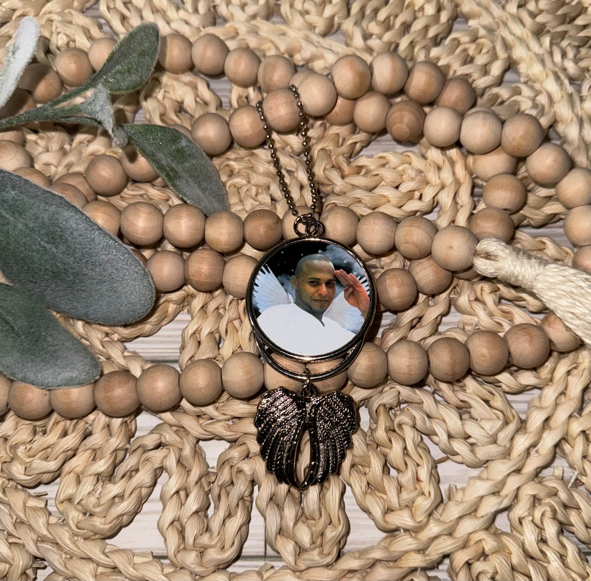 Treasure the memories of your loved one with our beautiful car charm. This double-sided charm serves as a loving memorial and keepsake, reminding you of all the wonderful times shared. Keep your loved one close wherever you go with this special and meaningful charm.